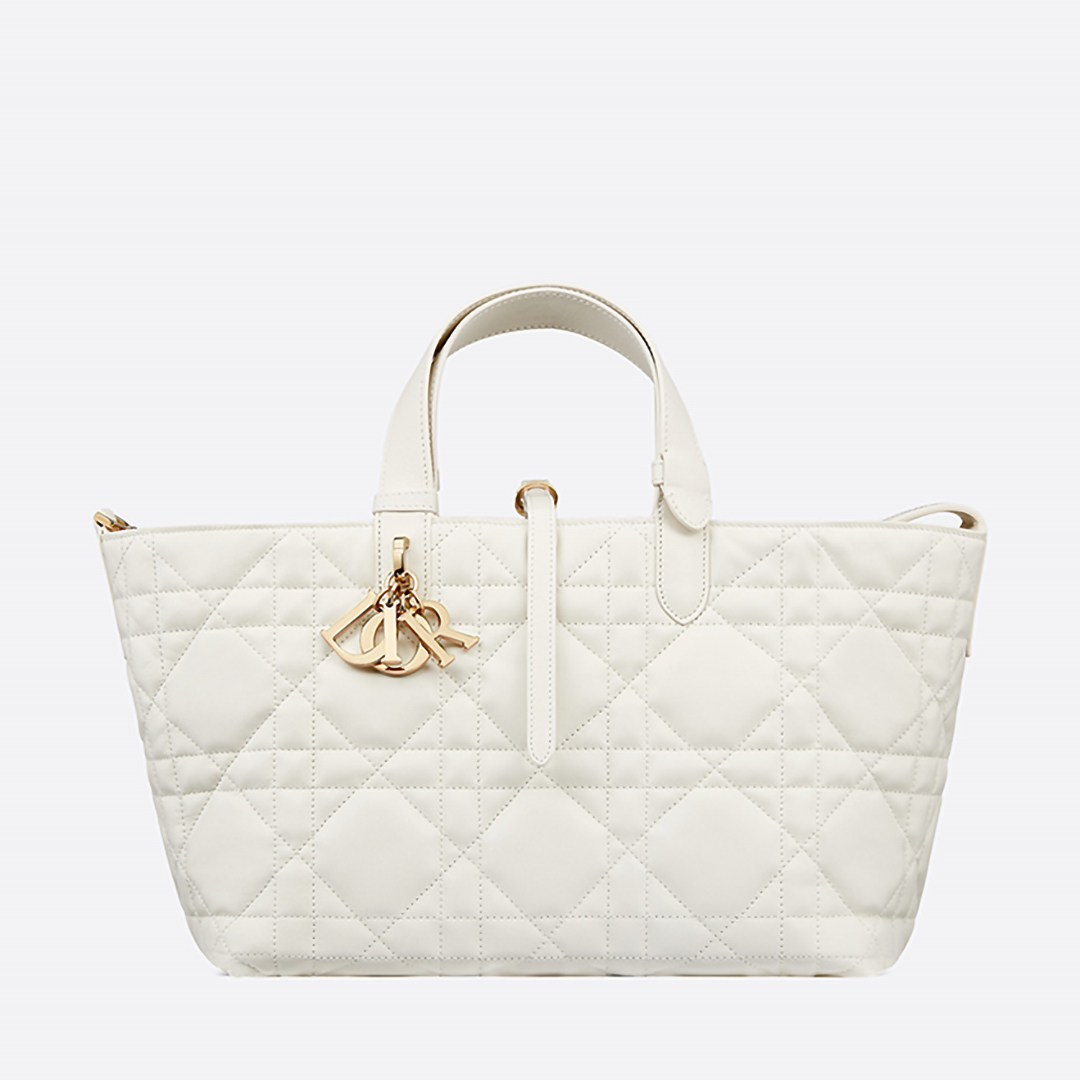 Unveiled at the Spring-Summer 2023 fashion show, the Dithtor Toujours bag is distinguished by a casual and practical design. Crafted in latte calfskin with Macrocannage topstitching, it showcases a spacious interior compartment with a matching pouch to organize essentials. Its leather strap closure keeps items secure while the D of the CD Lock closure twists to adjust the sides and enhance the bag's silhouette. The leather handles can be adjusted using the small notches in order to be able to carry the medium bag by hand or wear it over the shoulder.
