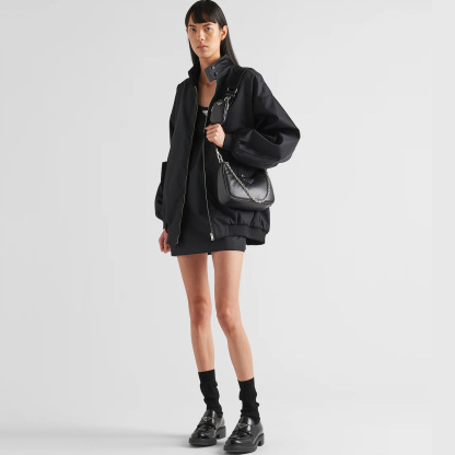 Softness and a simple silhouette define this mini handbag made of nappa leather with a padded construction. The tonal triangle logo frames the contrasting lettering logo, creating a textured, three-dimensional contrast that enhances the design of the accessory.