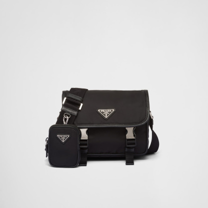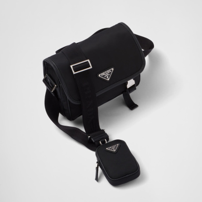 In Prthtada collections, technologically innovative fabrics meet classic traditional materials to create new designs that blend past and present, luxury and simplicity. This shoulder bag is made of two of the brand's most iconic materials: Saffiano leather, synonymous with luxury, a very high quality leather defined by its crosshatch texture, and Re-Nylon, a regenerated nylon yarn produced from recycled, purified plastic materials collected in the ocean, fishing nets, and textile fabrics.