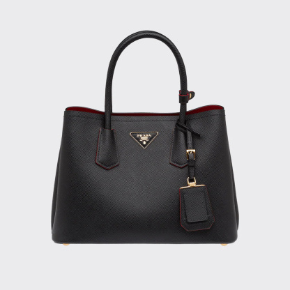 The Prthtada Double bag in Saffiano Cuir leather comes with a double handle and detachable shoulder strap. A flap pocket inside and lettering logo distinguish the bag with a nappa leather lining.