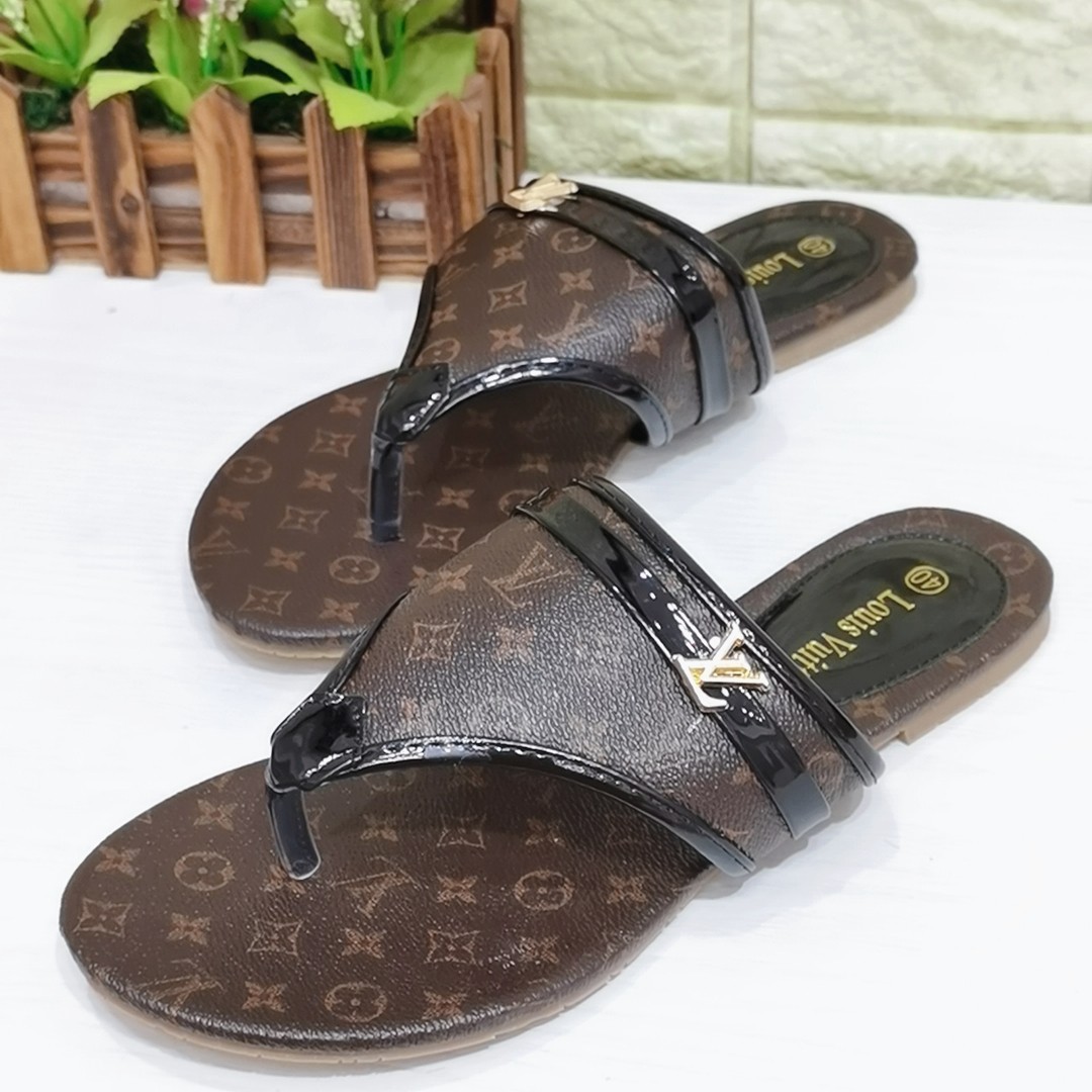 The Sunny flat thong combines Damier Azur canvas with natural calf leather for a relaxed yet elegant look. The natural leather toe post is embellished with an engraved, gold-tone stud inspired by historic Lothtuis Vuithttton trunks. This model is finished with a padded insole and a durable leather outsole.