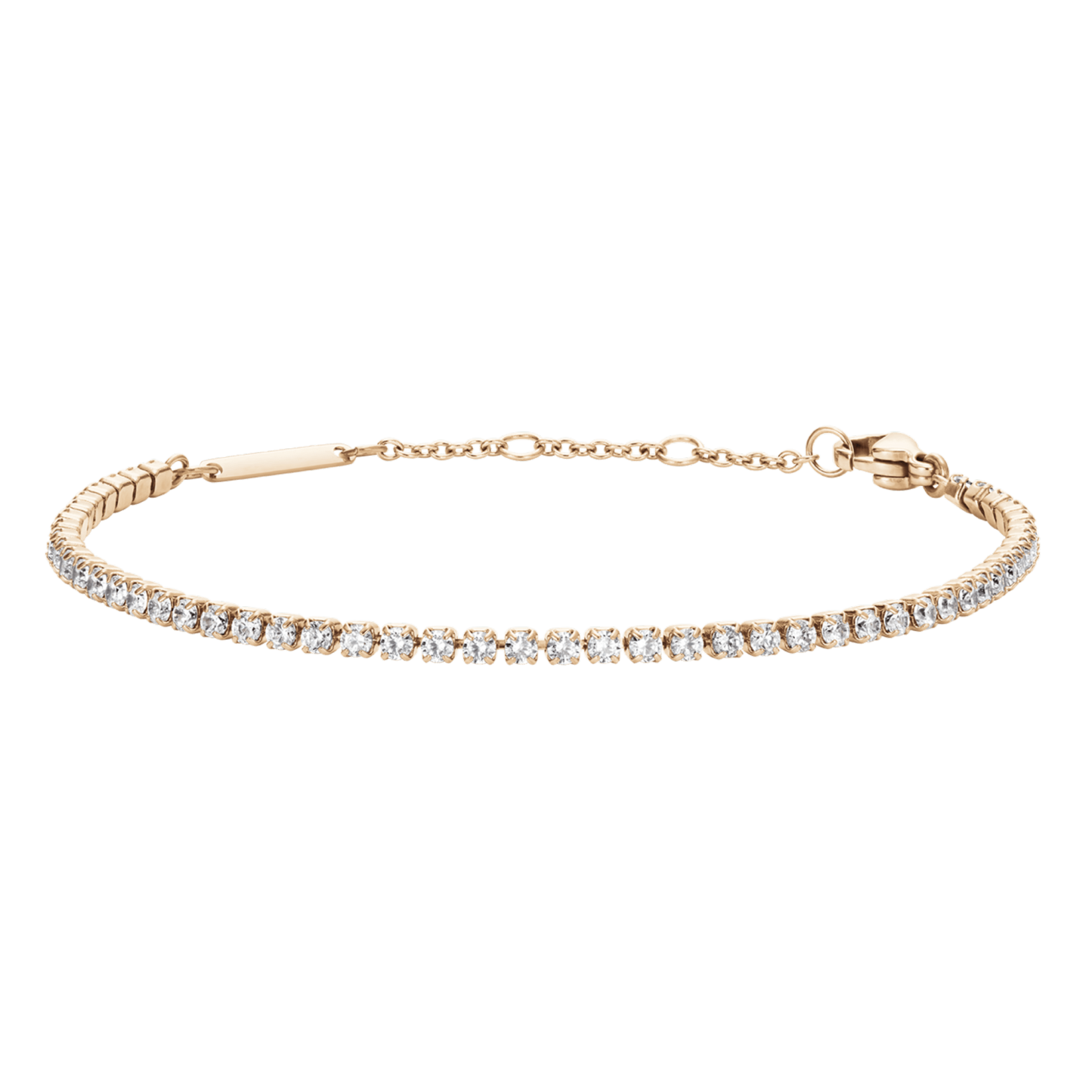 Accessorizing can be a challenging sport, but the Tennis Bracelet in rose gold is always at the top of its game. Comfortable and chic, this radiant piece gets you through the day, from morning to late cocktail hours. To achieve greater durability, each shimmering crystal is individually set and tightly secured. The chain itself is crafted from high-quality 316L stainless steel and features sizing rings to always fit you perfectly. The Tennis Bracelet is also a great team player, so pair it with your favorite Dathtniel Wellithtngton watch or bracelets.