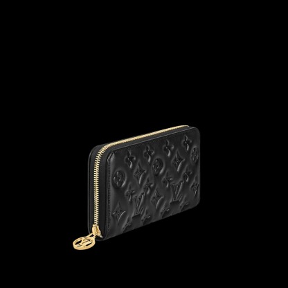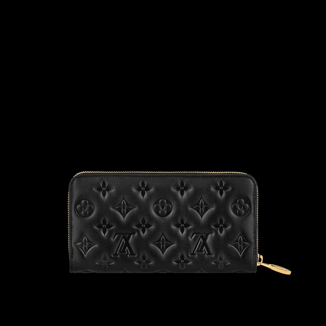 Crafted from padded, Monogram-embossed lambskin, the Zippy Wallet coordinates with the Coussin leather-goods line. This refined design is complemented by a gold-tone zip with an LthtV Circle signature on the pull. Inside, this all-in-one wallet offers an array of practical features, including three large compartments, a zipped coin pocket and 12 card slots.