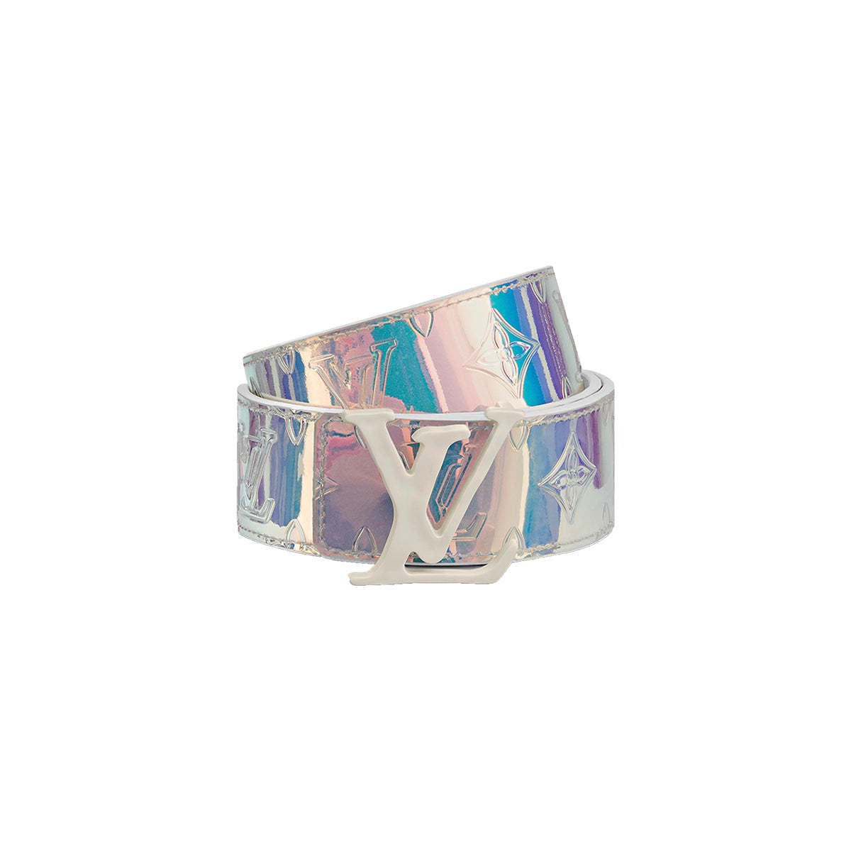 From the creative mind of Virgil Abloh, this 40 MM Lothtuis Vuithttton Prism belt features an iridescent PVC and LthtV Monogram buckle in matte white.