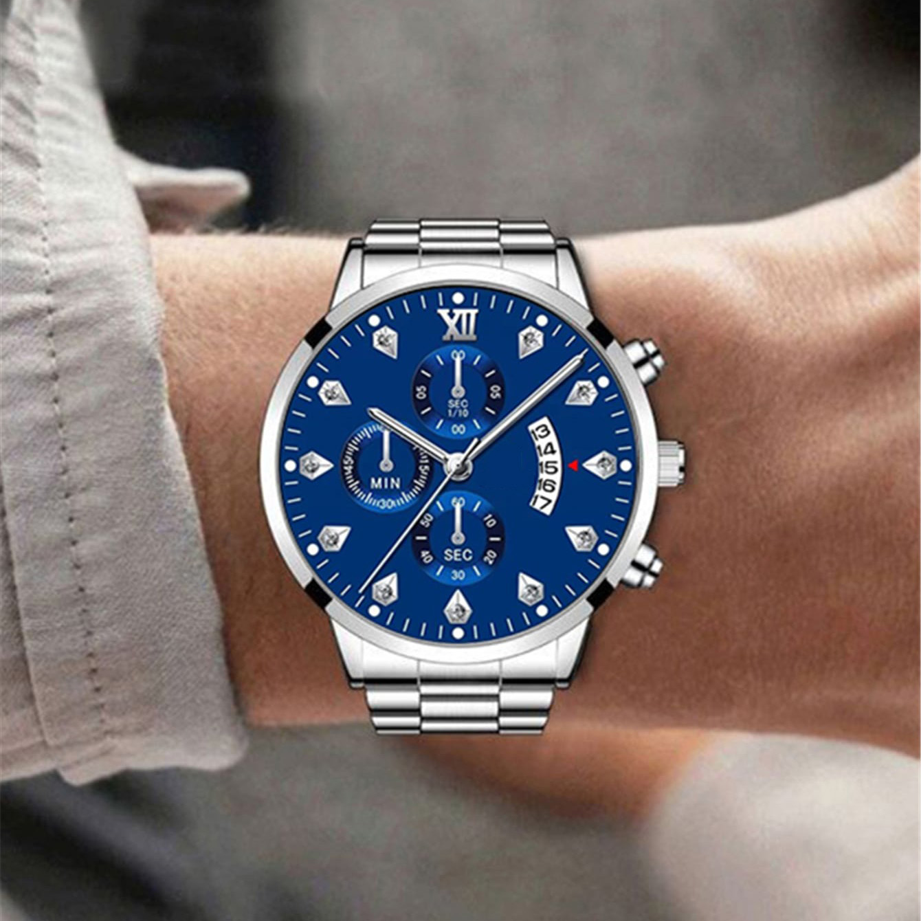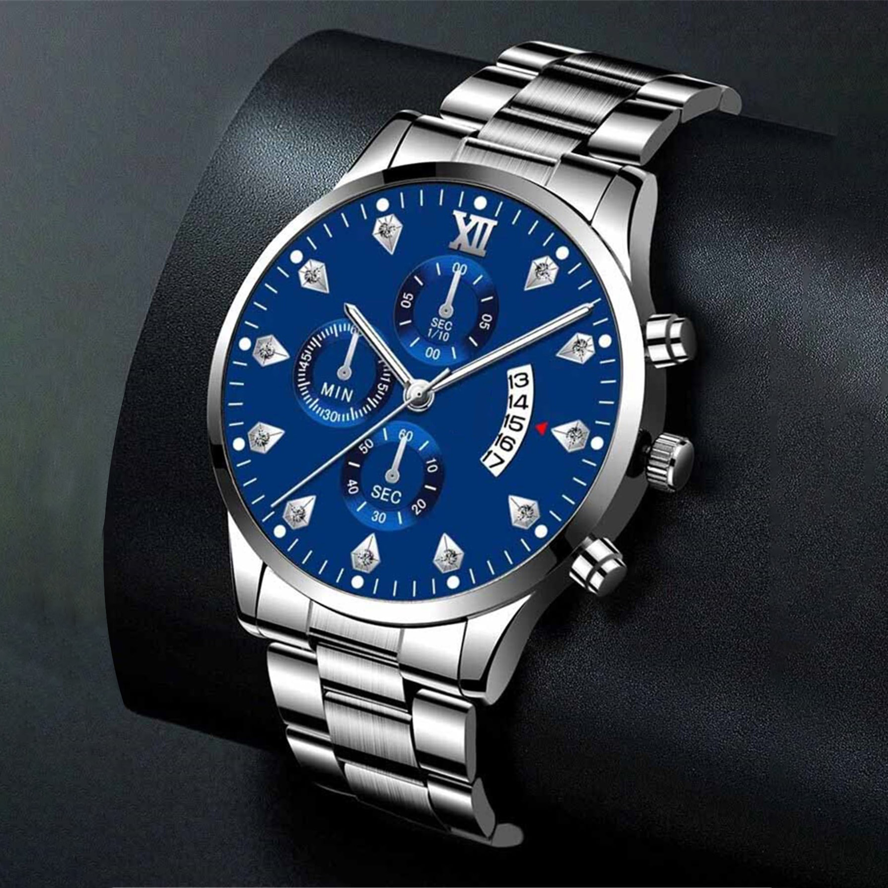 Men Round Pointer Date Quartz Watch