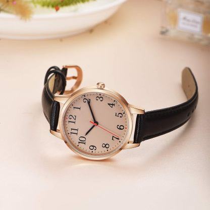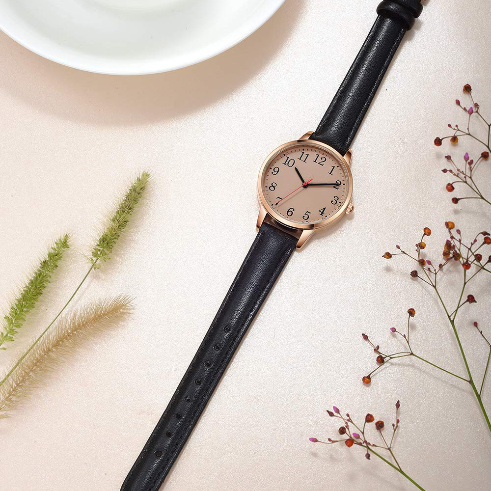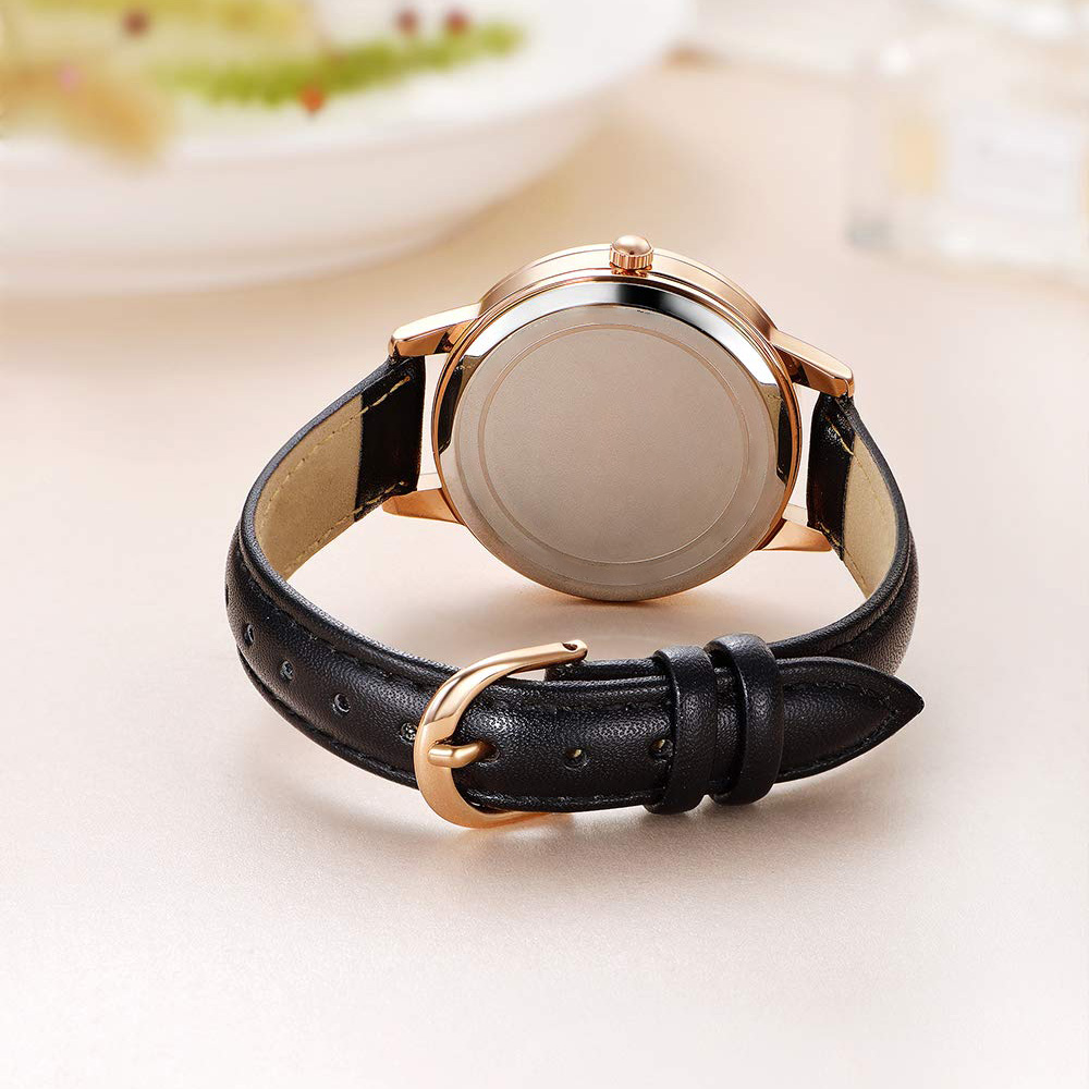 Women's Watch Minimalist Waterproof Silvery Case Black Leather Band Ladies Watch