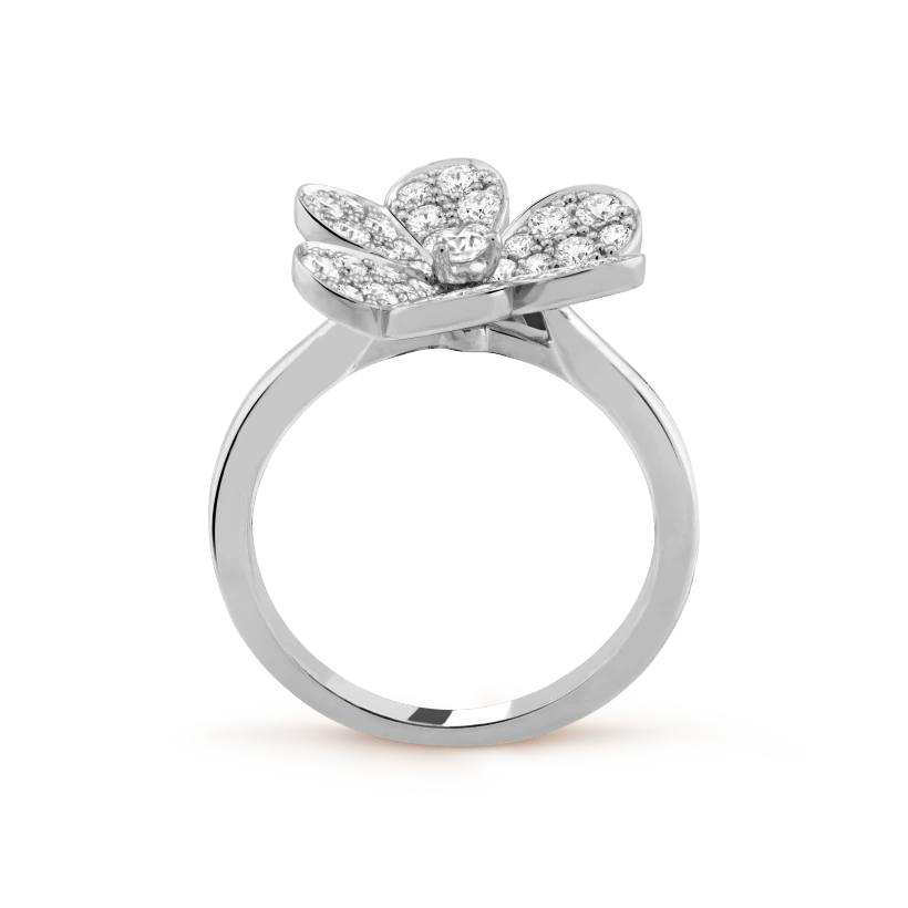 Frivole ring, 1 flower, rhodium plated 18K white gold, round diamonds; diamond quality DEF, IF to VVS.