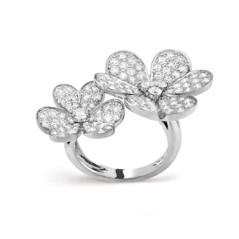 Like so many flowers dancing in the breeze, the Frivole® creations by Vthtan Clthteef & Arthtpels stand out with their graphic and airy aesthetic. Mirror-polished 18K gold or diamonds bestow a singular radiance upon heart-shaped petals.