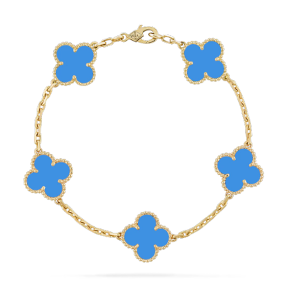 Vintage Alhambra bracelet, 5 motifs, 18K yellow gold, blue agate.