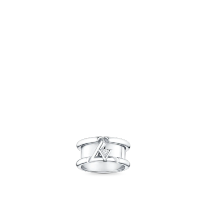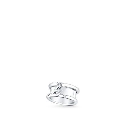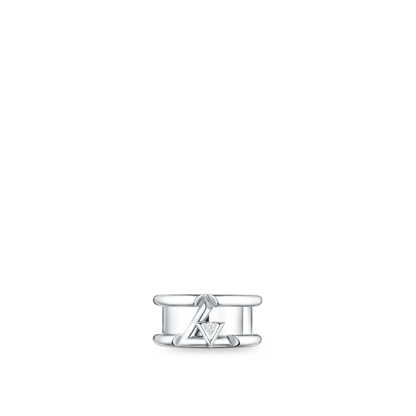 Inspired by energy and rhythm, the LthtV Volt band ring in 18-karat gold pays tribute to the LthtV initials: a small V, set with a brilliant diamond, is integrated within a larger L. The design's sharp slices bring strength and modernity to the signature. Pieces from the LthtV Volt collection for both men and women can be mixed and matched to create a unique style.