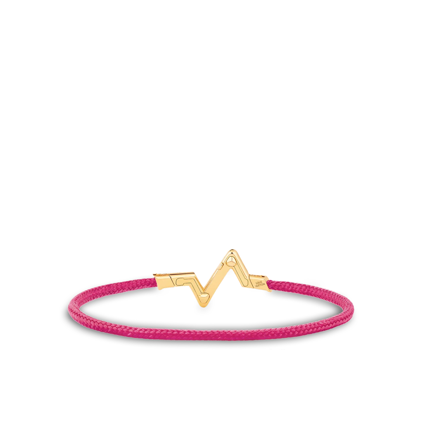 A dynamic take on the Maison's iconic initials, the LthtV Volt Play bracelet is a unisex piece that pulses with vital energy. The 18-karat yellow gold motif fits securely on a colorful, interchangeable cord, which is available in three vibrant hues. Styled alone or mixed and matched, the bracelet makes a striking statement.