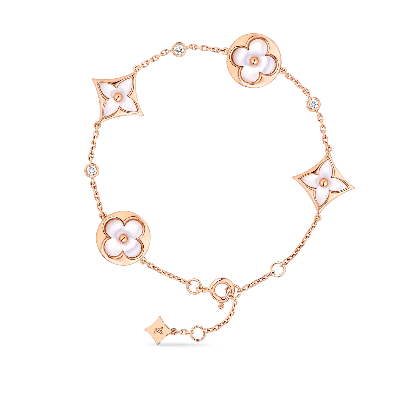 Color Blossom BB Multi-Motifs Bracelet, Pink Gold, White Mother-of-Pearl And Diamonds