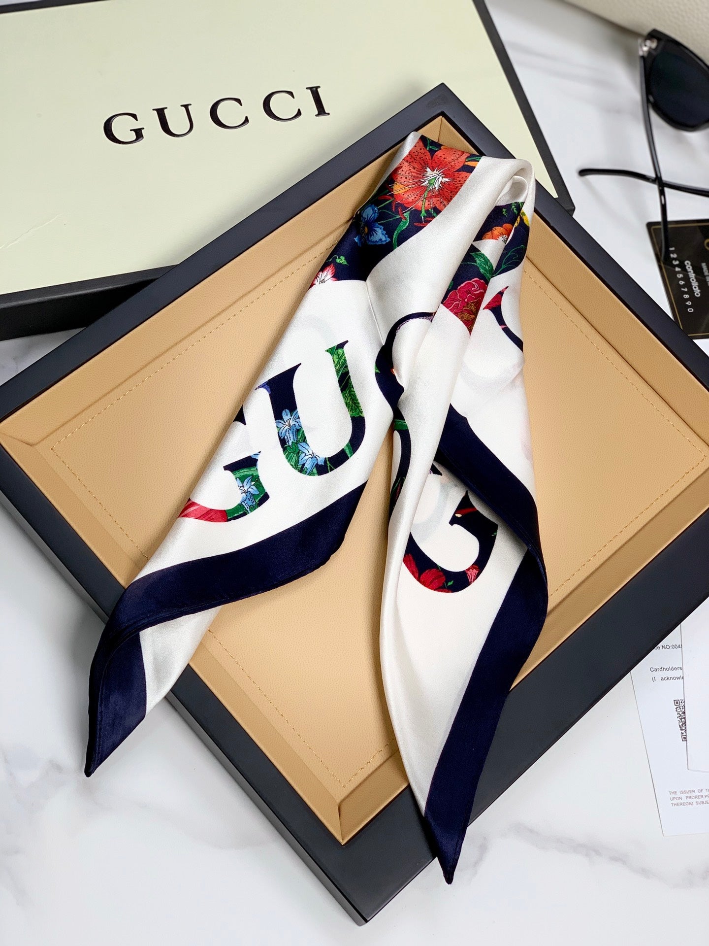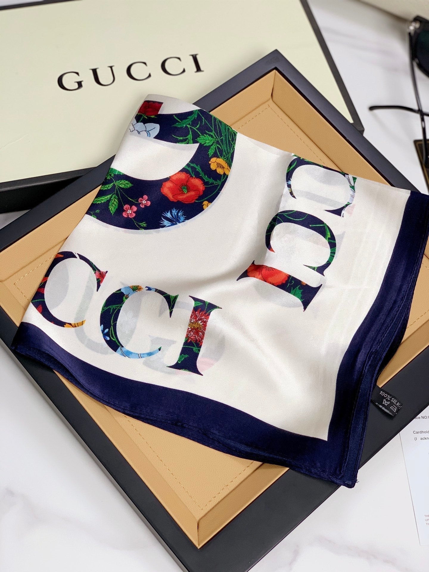 Product Name: Simple double G floral silk scarf