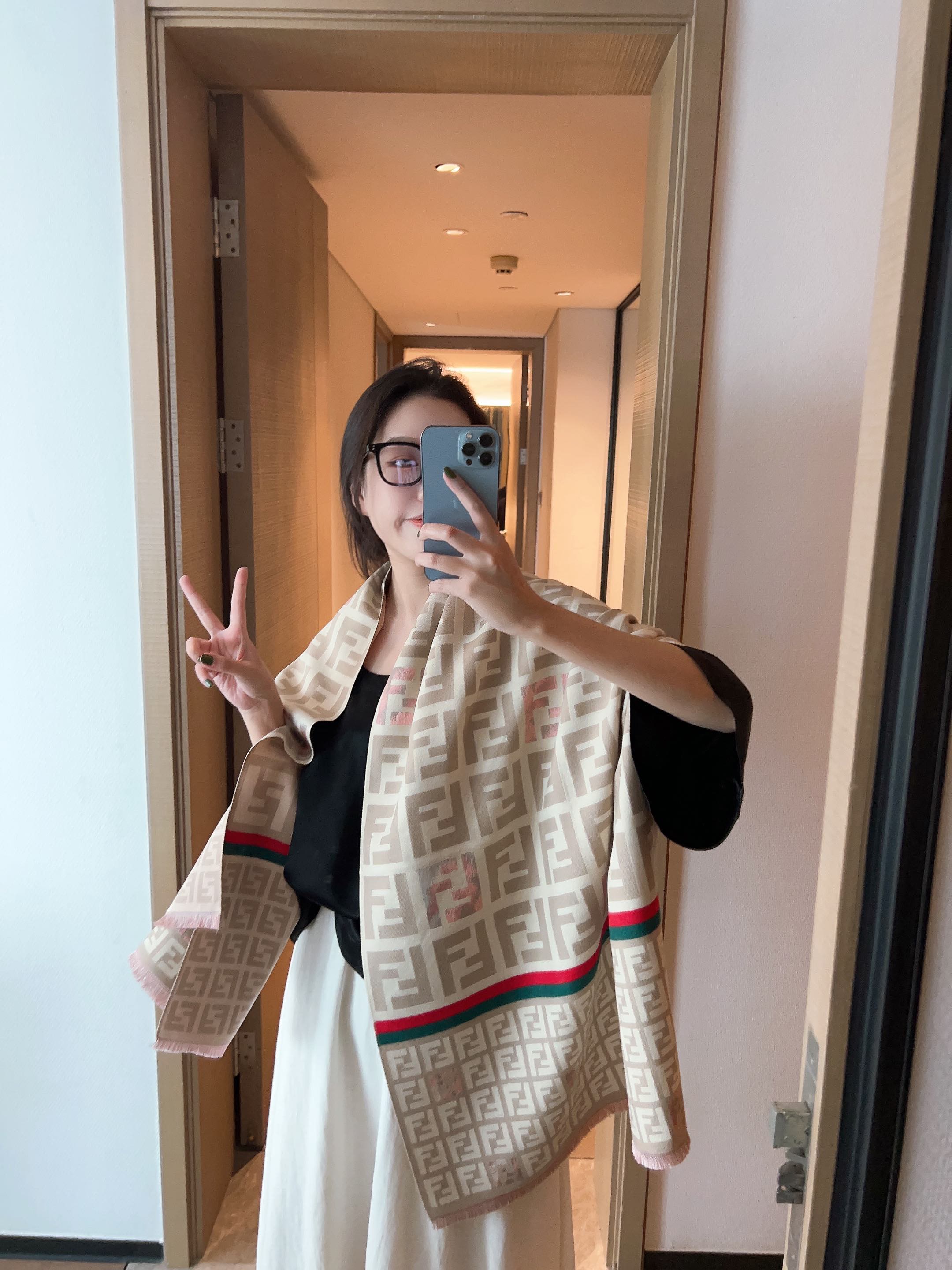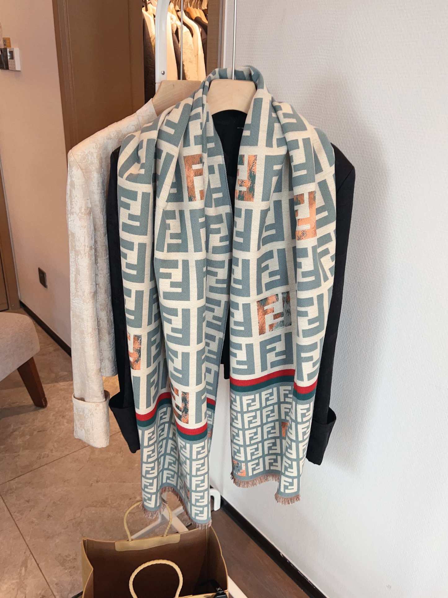 Fashionable FF strip pattern scarf