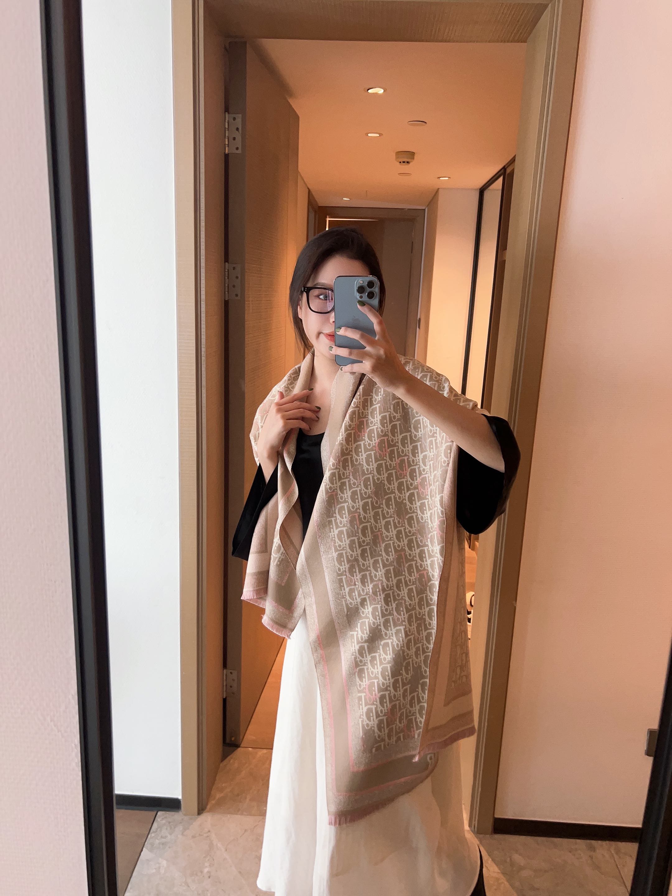 Product name: Fashionable CD letter strip pattern scarf
