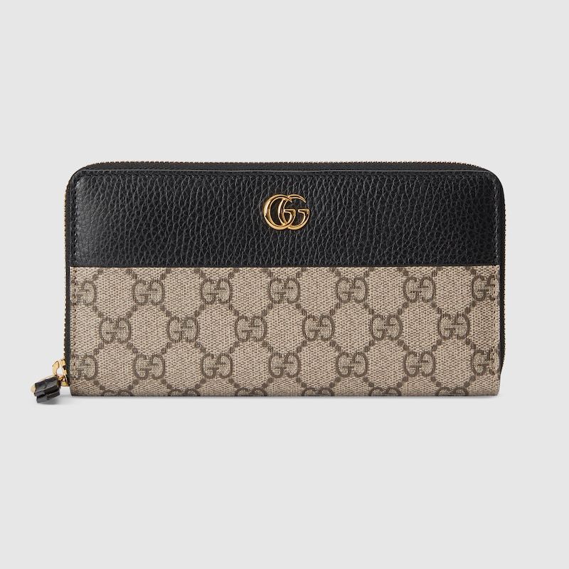 The GthtG Marmont line is enriched by the introduction of a zip around wallet in a mix of GthtG Supreme canvas and black leather. Taken from the '70s archives, the line's signature Double G hardware completes the style.